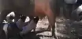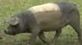 Krškopolje pig or Black-belted pig[1] (Slovene: Krškopoljski prašič) is an autochthonous breed of pig, originating in Slovenia.[2] This pig represents the only still preserved Slovenian autochthonous breed of domestic pig.[1] The easily recognizable blackish Krškopolje pig, widely used for meat production, is well known for its continuous pink belt, running across animal's shoulders and forelimbs.[2]