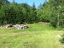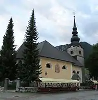 During the First World War, in 1916, Russian prisoners of war built a wooden chapel above the settlement[5] commemorating their comrades killed in an avalanche while building a road over the Vršič Pass. There is a small cemetery nearby.[7] Commemorations take place at the chapel every year.