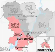 The Krasnoarmeysky constituency (No.82[lower-alpha 1]) is a Russian legislative constituency in Volgograd Oblast. The constituency covers southern Volgograd as well as southern Volgograd Oblast.