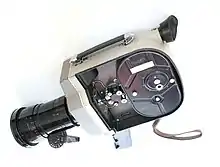This camera had an internal cassette in the magazine, which could fit 100 ft (30 meters) of a 16 mm film spools. This way the film could be replaced without risking light leaks.