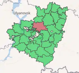Krasnoyarsky District (Russian: Красноя́рский райо́н) is an administrative[1] and municipal[7] district (raion), one of the twenty-seven in Samara Oblast, Russia. It is located in the northern central part of the oblast. The area of the district is 2,310 square kilometers (890 sq mi).[3] Its administrative center is the rural locality (a selo) of Krasny Yar.[2] Population: 54,497 (2010 Census);[4] 55,027 (2002 Census);[10] 50,945 (1989 Census).[11] The population of Krasny Yar accounts for 14.6% of the district's total population.[4]