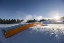 In December 2015, a new Freestyle park for snowboarders and freeskiers opened in Kreischberg, at 1,900 m.a.A. It got named “Snowpark Kreischberg”[6] and is being operated by QParks.[7] The park consists of one beginner line with three kickers, one wave run jump, 4 butter boxes (dance floor, rainbow, wave, flat/down), a beginner banked ramp and a medium line. The medium line consists of 11 different elements, including various kickers, tubes, jibs, rails and boxes.