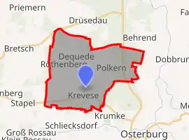 Krevese is a village and a former municipality in the district of Stendal, in Saxony-Anhalt, Germany. Since 1 July 2009, it is part of the town Osterburg (Altmark).