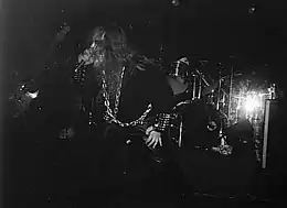 In 2001, Krieg played with Godless North and Inquisition on the North American Black Metal Invasion tour through Germany, where they were supported by the German band Secrets of the Moon.[5] At Krieg's show at Die Festung in Bitterfeld on December 8, 2001, Imperial dedicated his set to Kanwulf of Nargaroth,[6] who was beaten up by NSBM band Absurd's vocalist Ronald Wolf Möbus for threatening to kill the latter's son (who was about one year old at the time).[7][8] The show was recorded and released on the live EP Kill Yourself or Someone You Love.[6]