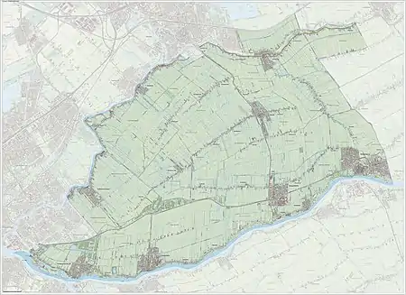 Krimpenerwaard (Dutch pronunciation: [ˈkrɪmpənərˌʋaːrt]) is a municipality, a region and a former water board of the Netherlands. It is a rural area located in the east of the province of South Holland, just south of Gouda and east of the Rotterdam conurbation. It is bordered on the north by the river Hollandse IJssel, on the south by the river Lek and on the east by the stream Vlist.[1]