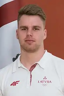 Kristers Aparjods (born 24 February 1998) is a Latvian luger. He started competing in luge in 2006. He took the gold medal in the singles event in the 2016 Winter Youth Olympics in Lillehammer, Norway, where he was also selected as the flag bearer for the Latvians in the opening ceremony. He was also part of the Latvian team which won the team relay at the 2015 Junior World Championships in Lillehammer, and went on to take a silver in the singles at the 2016 Junior World Championships in Winterberg, Germany, and a gold in the singles on home ice at the 2017 Junior Worlds at Sigulda. He competed at the 2018 Winter Olympics, finishing 11th in the men's singles event and sixth as part of the Latvian team in the team relay.[2]