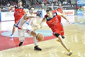 Kangur signed with Italian top team Virtus Bologna just before the Italian league play-offs in May 2010.[4] He played five games for the Bologna team averaging 7.6 points with a field goal percentage of 90% on two-pointers and 100% on three-pointers.[5] For the 2010–11 season Kangur signed with Pallacanestro Varese.[6] He was one of the top players in the team averaging 9.9 points and 5.4 rebounds in 32 games. In July 2011 Kangur signed a three-year deal with Italian powerhouse Montepaschi Siena but was loaned to Varese for the 2011–2012 season.[7][8] In his second year in Varese he posted similar numbers with 10.9 points and 5.2 rebounds in 36 games and earned himself a place in Siena's roster.