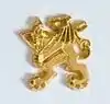The coat of the arms of the Kronoberg Regiment (I 11/Fo 16) 1977–1997 and the Kronoberg Group (Kronobergsgruppen) 1997–2004. Blazon: "Or, the provincial badge of Småland, a double-tailed lion rampant gules, armed and langued azure, in the forepaws a crossbow gules, arrow-head argent, bow and string sable. The shield surmounted two muskets in saltire or".[4]