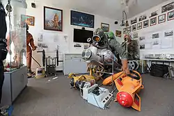 The exhibition occupies two rooms: the bigger one is devoted to the diving history, the smaller – to the Great Patriotic War, Leningrad Siege, and the Kronstadt military history. The museum houses a wide collection of diving equipment of different times, noteworthy, that all equipment is still operational. The collection comprises several diving helmets including the famous 3-bolt helmet (Russian “УВС-50М”) and 12-bolt coupled helmet. One of the most interesting and attractive exhibits of the 20th century are two surface and submerged diver delivery vessels Proton and Proteus used for sabotage, saboteurs’ weapon, suits of underwater swimmers. Besides, there is ventilated diving equipment, breathing sets of different types and purposes, dive knives, personal divers’ belongings, documents, recovered cannonballs etc. To the display items belong a torpedo firing panel and a diving immersion suit with a self-contained underwater breathing apparatus (Russian “ИДА-59”).
