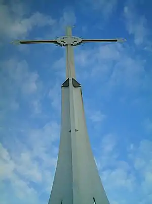 Up to the war in Bosnia and Herzegovina The Krstova Gora was named The Gračun (Serbo-Croatian pronunciation: [ɡratʃuːn]). The name was changed in the post-war period, when first regulation of the hill were undergone. In that period the two approaches to the hill top were improved. Pedestrian trail from the south now starts with concrete stairs and the vehicle road from the north is repaired. On the very top of the hill a several meter high metal cross is erected, standing on a two meter high concrete foundation. The cross is painted in bright colours making it clearly visible in daylight and during the night it is marked with spotlights. The cross represents local Orthodox Christian population which makes the absolute majority. The cross was the basis for the new name of formerly The Gračun hill.