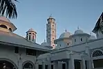 In 1862, ex-Sultan of Riau-Lingga, Sultan Mahmud IV Muzaffar Shah went to Terengganu from Bangkok on a Siamese vessel.[19][20] The British requested that the ex-Sultan to be withdrawn because the British accused the ex-Sultan and also the Sultan of Terengganu, Sultan Omar of supporting Wan Ahmad.[21][22] Wan Ahmad had constantly attacked Pahang using Kemaman as his base and British trade there were disrupted by the constant attacks.[23] The Siamese agreed to British request, but they have yet to follow through with their agreement. The Strait Settlements Governor, Sir Orfeur Cavenagh sent three ships, HMS Scout, HMS Coquette and a steamer Tonze to Kuala Terengganu, under the command of Captain Corbett, accompanied by Major MacPherson.[19] They were sent with orders to compel the ex-Sultan of Riau-Lingga to be sent back by the British to Siam, and to call upon the Sultan to cease supporting Wan Ahmad. After the Sultan of Terengganu declined to surrender the ex-Sultan to the British, the ships bombarded Kuala Terengganu.[24] The Sultan of Terengganu and the ex-Sultan had fled Kuala Terengganu during the bombardment. The ships then returned to Singapore. Kuala Terengganu was ravaged by a fire in 1882.[25][26] The fire that swept through Kuala Terengganu destroyed many buildings, including Green Palace (Istana Hijau), the Sultan's palace. Maziah Palace (Istana Maziah) was later built to replace the destroyed palace.[27]