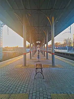 Kuchino (Russian: Кучино) is a railway station located in Balashikha Urban Okrug of Moscow Oblast, Russia. The station serves suburban traffic of Gorkovsky suburban railway line. The westbound trains terminate at Moscow Kursky railway station in Moscow. The eastbound trains terminate at the stations of Zheleznodorozhnaya, Kupavna, Fryazevo, Zakharovo, Elektrogorsk, Krutoye, Petushki, and Vladimir.[1] The station is operated by the Moscow Railway.