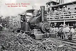 ![]() Steam locomotive of a banana plantation meets a steam boat on the Kukra River, circa 1909 | |