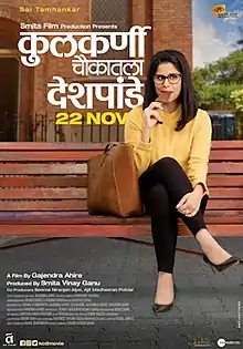 Kulkarni Chaukatla Deshpande is an Indian Marathi language drama film written and directed by Gajendra Ahire and produced by Smita Vinay Ganu under the banner of Smita Film Production. The film is co produced by Ajit Madhavrao Potdar and Seema Niranjan Alpe.[1] The film stars Sai Tamhankar in titular role of 'Kulkarni Chaukatla Deshpande', who is a rebellious middle class girl, the film focuses on her relationships and unfolds the journey of different relations on the path of her life. The film also features Rajesh Shringarpure in pivotal role.[2] The film was released on 22 November 2019.