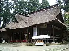 Kumano Shrine (熊野大社, Kumano-jinja) is a historic Shinto shrine in the Miyauchi neighborhood of the city of Nan'yō, Yamagata, in the Tohoku region of northern Japan. It is commonly referred to as the "Kumano Taisha", although the shrine does not officially have a "Taisha" designation. The shrine is one of the three main centers of the Kumano cult within Shintoism.