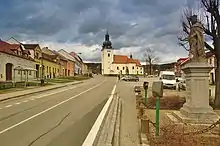 The Church of Saint Stanislaus Church is the landmark of the town centre. It was originally built in the 15th century and was rebuilt in 1687. Other sights on the square are a statue of George of Poděbrady from 1885, a Baroque house from 1756, and the rectory from the late 18th century.[5]