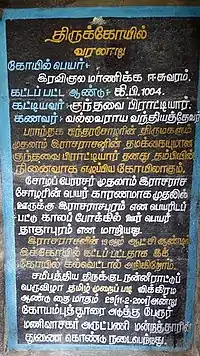 Kundavai commissioned many temples for Siva, Vishnu and Jain.[6][5] She features in Chola inscriptions.[7][8]