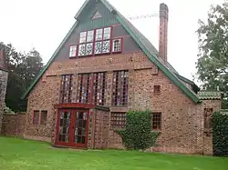 In 1911, Bossard bought a property in the Lüneburg Heath, near Jesteburg, and – after the end of World War I – started to focus his artistic work on this place. On three hectares of wooded heath, he had a number of structures built to his designs over the next decades, starting with the Atelierhaus in the style of Heimatschutzarchitektur, where he lived. All the interiors, including furniture, paintings, sculptures, ceramics, carpets and tableware were eventually also designed by Bossard himself.[2]