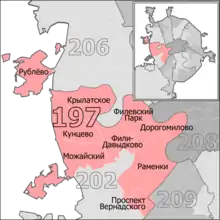 The Kuntsevo Constituency (No.197[lower-alpha 1]) is a Russian legislative constituency in Moscow. It is based in Western Moscow. In 2016 reconfiguration it absorbed parts of former Universitetsky constituency: Prospekt Vernadskogo and Ramenki (where Moscow State University campus is located).