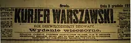 The Kurier Warszawski (or Warsaw Courier) was a daily newspaper printed in Warsaw, Poland from 1821 to 1939, with two editions daily from 1873. It was selling 4,000 copies in 1868, and over 20,000 copies after 1883.[1]