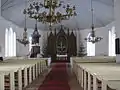 Kursi Church is a mixture of Baroque architecture and Gothic Revival architecture. It derives its present look due to alterations made by architect Johann Gottfired Mühlhausen.