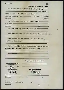 In 1923, Nehrling was working as an employee in the Thuringian Ministry of Economic Affairs when he met and later married his second wife, Hedwig Nehrling.