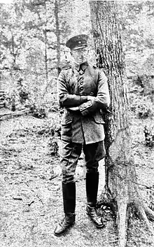 Born on 20 August 1893, Rackow was introduced into the Cadet Corps at an early point of his life. He joined the Imperial German Army's 158th Paderborn Infantry Regiment[lower-alpha 1] as Fahnenjunker (officer cadet) in 1912.[2] By the time World War I broke out in 1914, he had risen to second lieutenant.[3] Rackow took part in the initial German invasion of Belgium and France. He served with distinction as adjutant, fighting at Charleroi, St. Quentin, and taking part in the First Battle of the Marne, First Battle of the Aisne, and the First Battle of Artois.[2] In September 1915, he was appointed commander of the 158th Paderborn Infantry Regiment's 3rd company. With this unit, he participated in the Second Battle of Champagne during which he was wounded twice. In the first case, he was hit by shrapnel in his right foot, but fought on, only to be heavily wounded north of Le Mesnil three days later. He was hospitalized, and returned to the 3rd company in February 1916.[2]