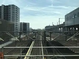 ![]() The Kagoshima main line and the Kyushu Shinkansen at the station | |