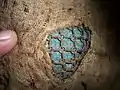 The Japanese used many different weave methods including: a square 4-in-1 pattern (so gusari), a hexagonal 6-in-1 pattern (hana gusari) and a European 4-in-1 (nanban gusari),[8] the kusari links could be doubled up and some examples were tripled in a possible attempt to make the kusari bullet resistant.[9] The links were lacquered black to prevent rusting, and were always stitched onto a backing of cloth or leather. The kusari was sometimes concealed entirely between layers of cloth.[10]