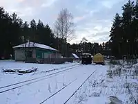 The Kushaverskoye peat railway's first line was constructed in 1967, in the area of Khvoyninsky District, Novgorod Oblast from the village Yubileyny to the swamp peat fields. The peat railway was built for hauling milling peat and workers and operates year-round. The total length of the Kushaverskoye peat narrow-gauge railway at the peak of its development exceeded 60 kilometres (37 mi), of which 16 kilometres (9.9 mi) is currently operational.[2]