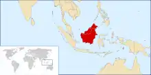 The Kutai sedimentary basin extends from the central highlands of Borneo, across the eastern coast of the island and into the Makassar Strait. With an area of 60,000 km2, and depths up to 15 km, the Kutai is the largest and deepest Tertiary age basin in Indonesia.[1] Plate tectonic evolution in the Indonesian region of SE Asia has produced a diverse array of basins in the Cenozoic.[2] The Kutai is an extensional basin in a general foreland setting. Its geologic evolution begins in the mid Eocene and involves phases of extension and rifting, thermal sag, and isostatic subsidence. Rapid, high volume, sedimentation related to uplift and inversion began in the Early Miocene.[1] The different stages of Kutai basin evolution can be roughly correlated to regional and local tectonic events.[2] It is also likely that regional climate, namely the onset of the equatorial ever wet monsoon in early Miocene, has affected the geologic evolution of Borneo and the Kutai basin through the present day.[3] Basin fill is ongoing in the lower Kutai basin, as the modern Mahakam River delta progrades east across the continental shelf of Borneo.