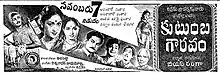 Kutumba Gowravam (transl. Family prestige) is a 1957 Telugu-language drama film, produced and directed by B. S. Ranga under the Vikram Studios banner.[3][4] It stars N. T. Rama Rao, Savitri[5] and music composed by Viswanathan–Ramamoorthy.[6] The film was remade in Tamil under same name, banner and director; starring Gemini Ganesan and Savitri.[7] The film was recorded a commercial success.[8]