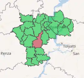 Kuzovatovsky District (Russian: Кузова́товский райо́н) is an administrative[1] and municipal[6] district (raion), one of the twenty-one in Ulyanovsk Oblast, Russia. It is located in the center of the oblast. The area of the district is 2,098 square kilometers (810 sq mi).[2] Its administrative center is the urban locality (a work settlement) of Kuzovatovo.[1] Population: 22,377 (2010 Census);[3] 27,225 (2002 Census);[8] 30,218 (1989 Census).[9] The population of Kuzovatovo accounts for 35.8% of the district's total population.[3]