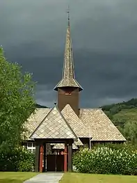 In 1938, a burial chapel was constructed near the church along the cemetery. The chapel was built using money that was a gift from Petra Sletten (who is buried in the cemetery). This new chapel was consecrated on 12 August 1938. By the 20th century, the church needed renovation. The tower was leaning, the floor had to be replaced, the benches were not good, and other issues. During the late-1930s, plans were drawn up to renovate the church. Funds were allocated in the winter of 1940, but World War II disrupted their plans and things were put on hold. On the evening of 26 April 1940, the church caught fire, presumably by a German grenade during some fighting between the German and British forces. The church burned to the ground along with all its interior furnishings. About 100 buildings in the village were damaged by the fire. The small burial chapel at the church survived the fire. All that remains of the old church is a small church bell, the spire, and a door.[3][7]