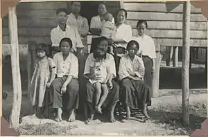 The Kwijau or Kuijau are an indigenous ethnic group residing in Sabah, eastern Malaysia on the island of Borneo. The kwijau claim descend from the Nunuk Ragang settlers. They reside in the Interior Division within a 12-mile radius to the west and north of Keningau town.[3] Their population was estimated at 7,910 in the year 2000. They are considered a sub-group of the Kadazan-Dusun,[4] as their language is on the Dusunic branch of the Austronesian language family (ISO 639-3 dkr). About 20% of the population embrace the Christian faith in denominations of evangelical Christianity and Roman Catholicism, the remainder are animist practicing the ancient belief system called Momolianism. They are known for performing the Magunatip, an east Malaysian dance very strongly influenced by the Philippine tinikling. Performed by the young men and women, the dance involves jumping steps that manoeuvre the dancer's feet in and out, so as not to get their feet trapped by 2 moving bamboo poles that are held by another pair of dancers, who beat the poles together and over a shorter length of wood or bamboo, creating an interesting rhythm.