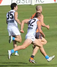Kyal Horsley (born 2 September 1987) is an Australian rules footballer who formerly played for the Gold Coast Football Club in the Australian Football League (AFL). Originally from Kalgoorlie, Western Australia, he previously also played with the Kalgoorlie City Football Club in the Goldfields Football League (GFL) and the Subiaco Football Club in the West Australian Football League (WAFL), where he finished runner-up in the 2011 Sandover Medal to Luke Blackwell. Horsley was drafted by Gold Coast with the second pick in the 2012 Rookie draft, and made his debut for the club in round five of the 2012 season. He was delisted by the club at the end of the 2013 season, after 14 games. Horsley returned to the Subiaco Football Club in 2014 to captain the WAFL side for the 2014 season. Horsley had a powerful return to the WAFL finishing third in the Sandover Medal count after leading the Lions to their 12th premiership.