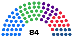 Council members are elected for five year terms. In order to gain representation in the council, a party must gain more than 5 percent of the total vote.[2]