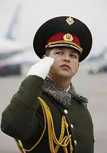 The Kyiv Presidential Honor Guard Battalion (Ukrainian: Почесна варта Окремого Київського полку Президента України) is a guard of honour unit of the Armed Forces of Ukraine. It is a part of the Hetman Bohdan Khmelnytsky Independent Presidential Guard Regiment.[4]