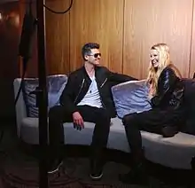 ![]() Speer interviews Robin Thicke in 2013 | |