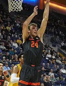 At Lane CC, Kelley was recruited by multiple Pac-12 programs and chose to continue his career at Oregon State because he wanted to stay close to home.[8] On December 17, 2018, as a junior at Oregon State, Kelley tallied a school-record nine blocks, to go with 10 points and nine rebounds, in an 82–67 victory over Pepperdine.[9] By the end of the season, he ranked second in the nation, led the Pac-12 and set a school record with 3.35 blocks per game. He also averaged 7.7 points and five rebounds per game and was named to the Pac-12 All-Defensive Team.[10] On December 18, 2019, as a senior, Kelley posted a season-high 23 points, six rebounds and three blocks in an 88–78 win over UTSA.[11] He became Oregon State's all-time leader in blocks in a January 30, 2020 victory over Stanford, during which he posted 10 points, seven blocks and six rebounds.[12] Kelley finished his senior season averaging 11.1 points, 5.3 rebounds and 3.45 blocks per game, earning Pac-12 All-Defensive Team honors for a second time. He averaged the second-most blocks per game in the nation and led the Pac-12 in that category.[13] Despite the Pac-12 Tournament being cancelled due to the coronavirus pandemic, Kelley finished with 211 blocks in two years at Oregon State.[14]