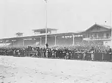 Kyoto Racecourse (京都競馬場, Kyōto-keibajō) is located in Fushimi-ku, Kyoto, Kyoto Prefecture, Japan. It is used for horse racing. It has a capacity of 120,000. It was built in 1999.