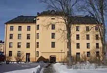 Långholmens rasp- och spinnhus, commonly known as Långholmens spinnhus, was a women's prison in Långholmen, Stockholm, Sweden.[1] The prison was established in 1649 when the Malmgården in Alstavik at Långholmen was erected, and was closed in 1825.[2] The building became state property in 1724 and was used as a spinnhus (thread-spinning house).[3] Malmgården was later expanded to increase its capacity. In 1825 the spinnhus was relocated to Norrmalm. After the move, the Långholmen Prison started to operate on the grounds.[4]