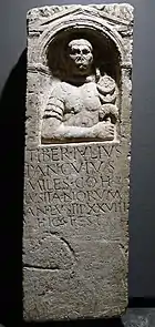 The man sits before an imitation parapet with three sets of painted inscriptions, each rendered to look as if chiselled or scratched into stone.[3] Van Eyck did not have full command of either classical Greek or Latin and made errors, so readings by modern scholars vary. The first inscription is in Greek and seems to spell "TYΜ.ωΘΕΟϹ", which has not been satisfactorily interpreted but has led some to title the work Timotheus. The middle reads in French "Leal Souvenir" ("Loyal Memory") and indicates that the portrait is a posthumous commemoration. The third records van Eyck's signature and the date of execution.[4] The 19th-century art historian Hippolyte Fierens-Gevaert identified the lettering "TYΜ.ωΘΕΟC"[5] with the Greek musician Timotheus of Miletus. Panofsky drew the same conclusion, eliminating other Greeks bearing the name Timothy; they were of religious or military background, professions that do not match the civilian dress of the sitter. Panofsky believed the man was probably a highly placed musician in Philip's court.[6]