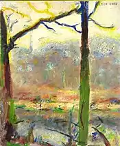 In the 1960s, he returned to the daily grind, no doubt more out of necessity than by choice. His friend Sudreau, the Secretary of State, gave him a room in the castle of Bonhommes in l'Isle-Adam forest. The castle grounds, with its diverse trees, its ponds and its changing aspects tracking the changing of the seasons, offered to Gard a multitude of subjects. Since he could only make short trips there for a day or two, he chose to make drafts. He tried to seize the effects of light, wind, fog, snow, rain, playing in the trees, the meadows, the water or the sky. The light is expressed in prominent fluid brushstrokes, which do not seek to flatter the layman's eye. For the expert, these landscapes are a collection of erudite and delicious harmonies which sing nature.