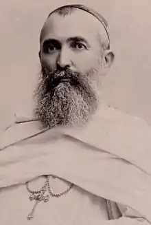 In February 1873 Livinhac applied to Archbishop Charles Lavigerie, the founder and head of the Society of the Missionaries of Africa. He began his novitiate at the White Fathers house at Maison Carrée, near Algiers, in April 1873.[1] Archbishop Lavigerie ordained him as a priest of the White Fathers on 12 October 1873. Although he had not completed his novitiate, he was immediately appointed vice-rector, bursar and professor of dogmatic theology of the White Fathers' major seminary, the scholasticate. On 7 April 1874 he took his oath as a missionary, and on 12 October 1874 was elected as a member of the society's General Council. At that time there were 43 fathers and 9 brothers in the society. His first missionary appointment was in February 1875 in Kabylie, to the east of Algiers.[1] The missionaries had to act with great care, since the French colonial authorities were deeply suspicious of proselytizing activity that could disturb the peace.[3] In August 1875 he was recalled to become rector of the scholasticate.[1]