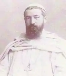 Charles Lavigerie, the founder of the White Fathers in 1868 and the White Sisters in 1869, had great influence on missionary activity in Africa.[4] He came to believe that an African Catholic kingdom should be founded in the east of Central Africa as a refuge for escaped slaves and a center for converting the surrounding peoples. In May 1883 a mission head proposed the idea of brothers who would train the converts to defend their missions, as an alternative to hiring mercenaries.[5] Bridoux was asked to review the rules of orders such as the old Knights of Malta, and in his report he proposed that brothers-in-arms should be employed for defense, under the direction of the Fathers. Lavigerie began thinking of directly using the knights of the Order of Malta.[6] However, he was not able to get support from the grand master and the idea was abandoned.[7]