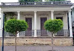 The López Residence (Spanish: Residencia López) is a historic house in Aguadilla, Puerto Rico. Built in 1914, this one-story, Neoclassical structure is architecturally significant as a typical urban residence for a well-to-do Puerto Rican family in the early 20th century, and as one of the most important remaining works by architect Manuel Gómez Tejera. Notable architectural elements of the house include its five slender, octagonal Corinthian columns, recessed ceiling panels on the balcony, ornate cast-iron balcony ornamentation, native ceramic tile floors, rooftop balcony, four louvered wooden doors with scrollwork frames facing the street, and filigreed interior arches supported by turned and octagonal columns. It faces the 1925 District Courthouse across Progreso Street, forming a historic Neoclassical set.[1]