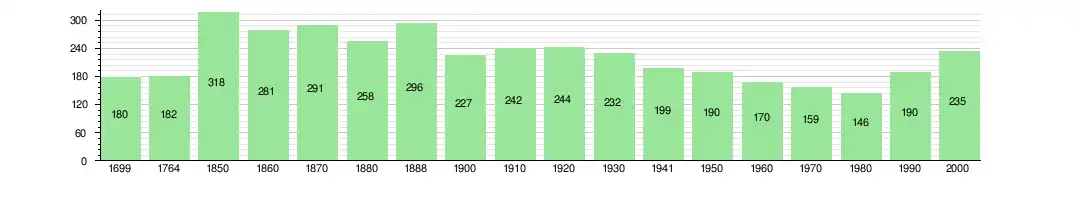 L'Abergement has a population (as of December 2020) of 256.[6] As of 2008, 9.5% of the population are resident foreign nationals.[7] Over the last 10 years (1999–2009 ) the population has changed at a rate of 10.2%. It has changed at a rate of 4% due to migration and at a rate of 6.2% due to births and deaths.[8]