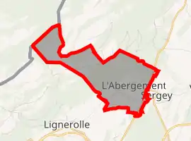 The municipality is located at the foot of the Jura Mountains. It consists of the linear village of L'Abergement and the hamlet of Vailloud.