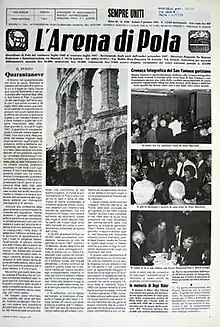 L'Arena di Pola (lit. '"Pola's Arena"') is an Italian newspaper founded in Pola (today Pula, Croatia), on 29 July 1945.[1] Following the Yugoslav/ Croatian annexation of the city, the daily newspaper was moved first to Gorizia and then to Trieste.[2] After it was moved to Gorizia, it became a periodical newspaper.